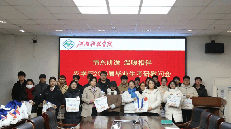 为帮助考研学子坚定备考信念,缓解冲刺阶段的心理压力,传递学院的关怀与期许,12月5日上午,农学院2026届毕业生考研慰问会在知行楼708会议室隆重举行。学院党政领导班子成员、全体辅导员及2026届考研学生代表等70余人齐聚一堂,共话备考心得,共赴梦想之约。