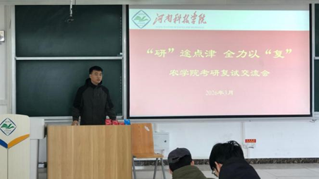 为精准助力考研学子明晰复试备考方向、高效冲刺复试环节,3月12日,农学院精心举办2026年考研复试分享交流会。本次活动聚焦学子备考刚需,整合院内优质育人资源,搭建起务实高效的复试指导交流平台,以暖心服务、专业指引为学子考研征途保驾护航,活动由2022级辅导员张嘉琪主持。